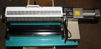 該設(shè)備使用微電機(jī)作為動(dòng)力,通過(guò)同步帶帶動(dòng)高精密滾珠絲杠轉(zhuǎn)動(dòng),從而帶動(dòng)沖頭水平運(yùn)動(dòng)。絲杠每轉(zhuǎn)動(dòng)一周(或半周),沖擊針行進(jìn)10mm(或5mm),同時(shí)傳感器采集一個(gè)信號(hào),進(jìn)而驅(qū)動(dòng)高頻電磁鐵帶動(dòng)沖擊針進(jìn)行打點(diǎn)。電機(jī)連續(xù)運(yùn)轉(zhuǎn),即可連續(xù)打點(diǎn)60個(gè)(5mm)或30個(gè)(10mm)。這種傳動(dòng)擊打方式,對(duì)絲杠轉(zhuǎn)速是否均勻沒(méi)什么要求,即使轉(zhuǎn)速不均也可確保標(biāo)距的精確度。